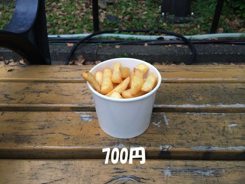 Sサイズが390円、Mサイズが500円、それくらいならまだ許せると思います。さらに、フライドポテトが