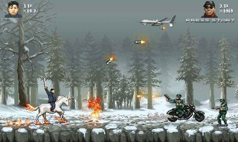 これは北朝鮮の金正恩書記が「資本家」の群れを撃退するために総攻撃を行うものだとのことです。