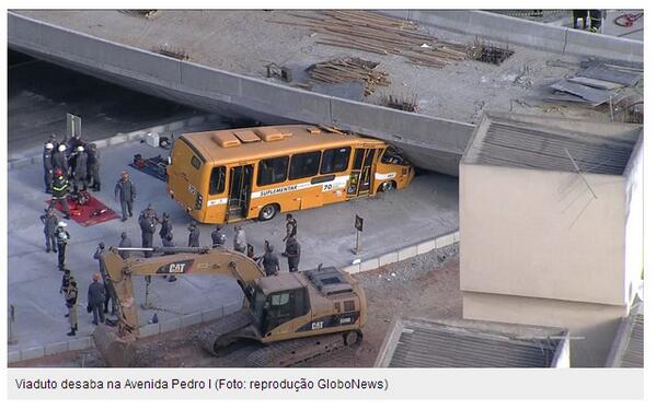 ブラジル・ワールドカップのホスト都市ベロオリゾンテでバスの上に跨線橋が崩落。