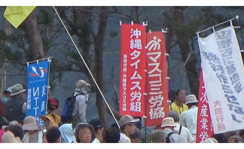 というかこの写真の一番の笑い所は、沖縄マスコミ自体が運動に参加していること