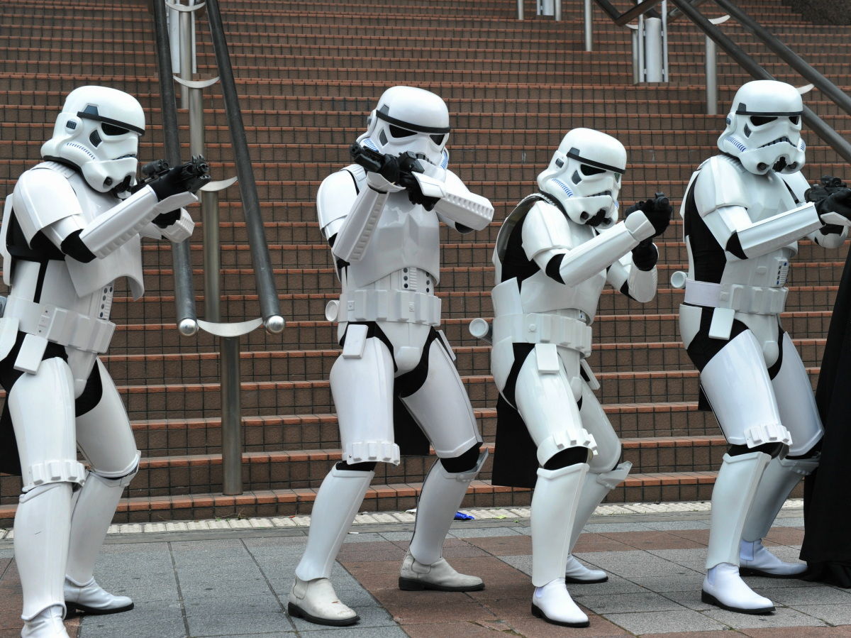 ストームトルーパーはしゃがめなかったり、転んで立ち上がるのが難しかったり、常に前屈みじゃないと頭のバランス取れなかったりするから、映画の中でも弱い。