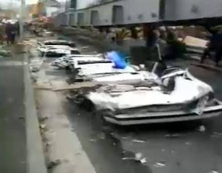 広島のあれは、車がぺしゃんこに潰されて