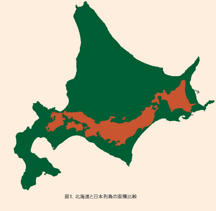 都府県を配置した地図が掲載されているのだが、北海道の広大さが非常に分かりやすく表現されている。これを見れば、