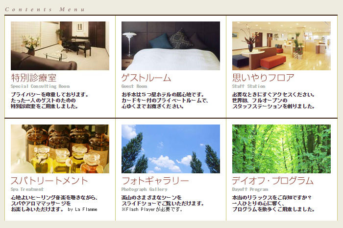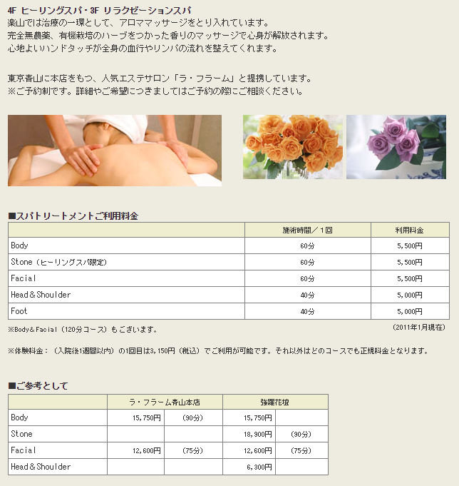 部屋は60室+αと書かれており、4Fヒーリングクラブフロア、3Fリラクゼーションフロアのふたつの専用フロアに