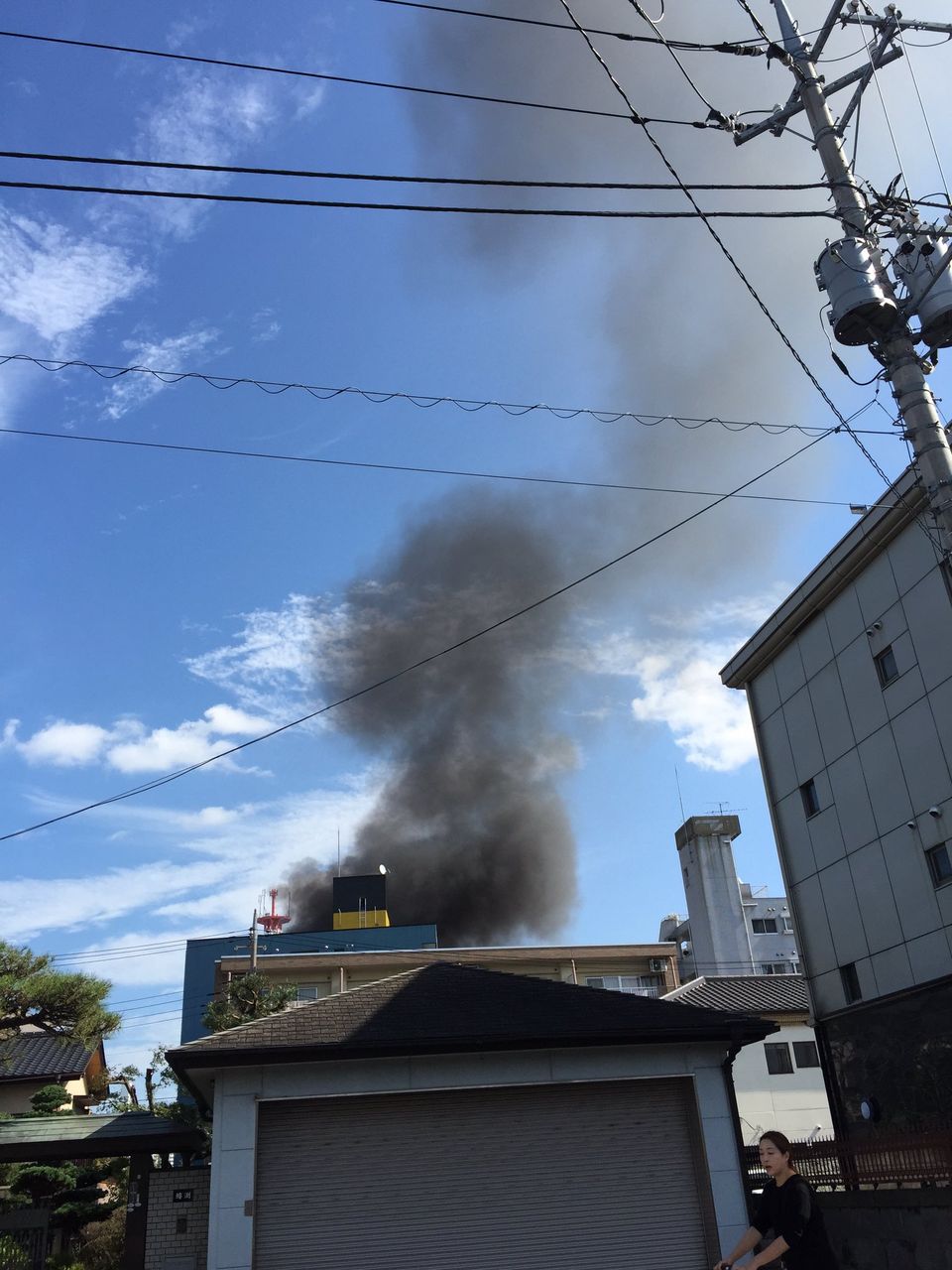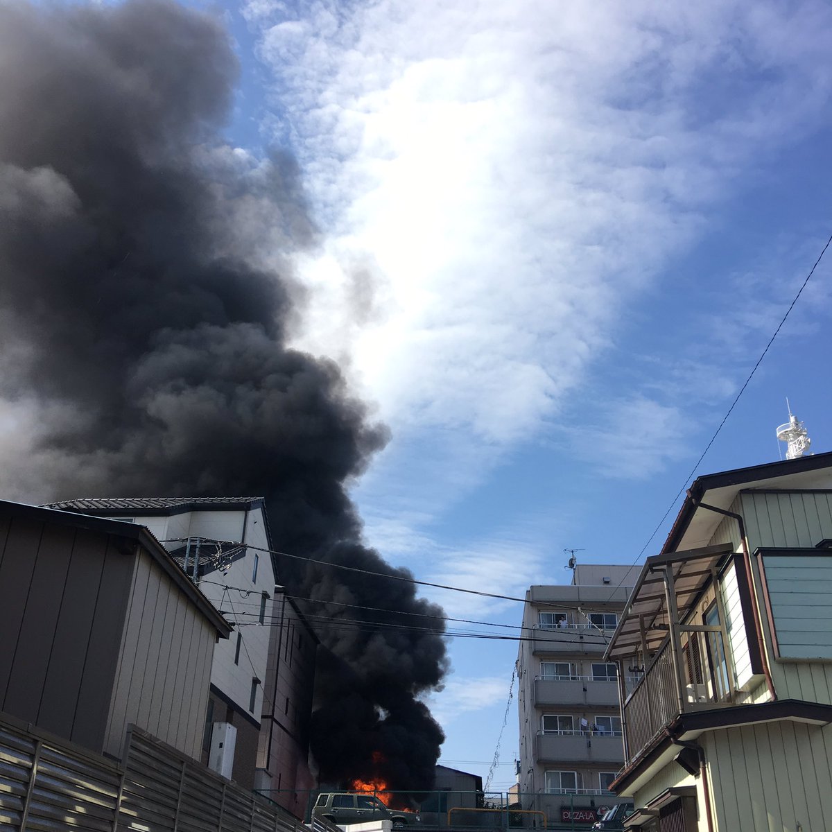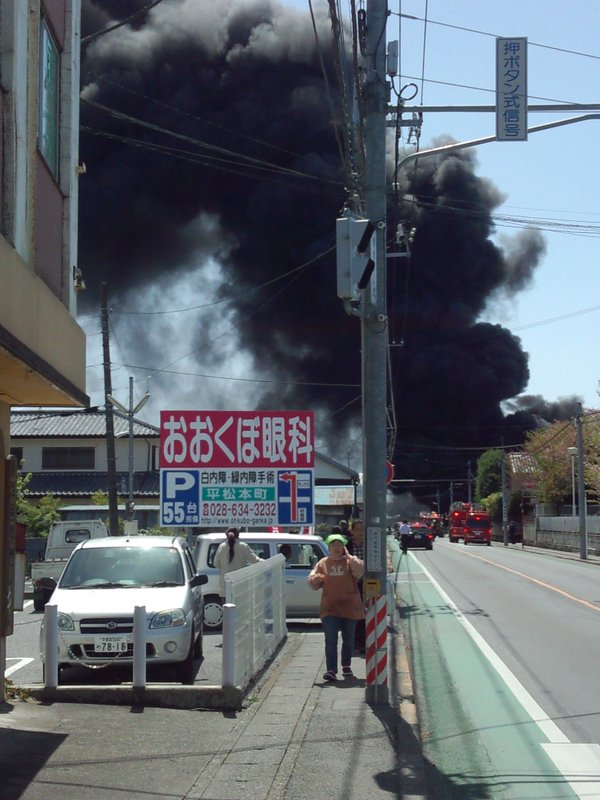 凄い黒煙だな 車が燃えてる奴か