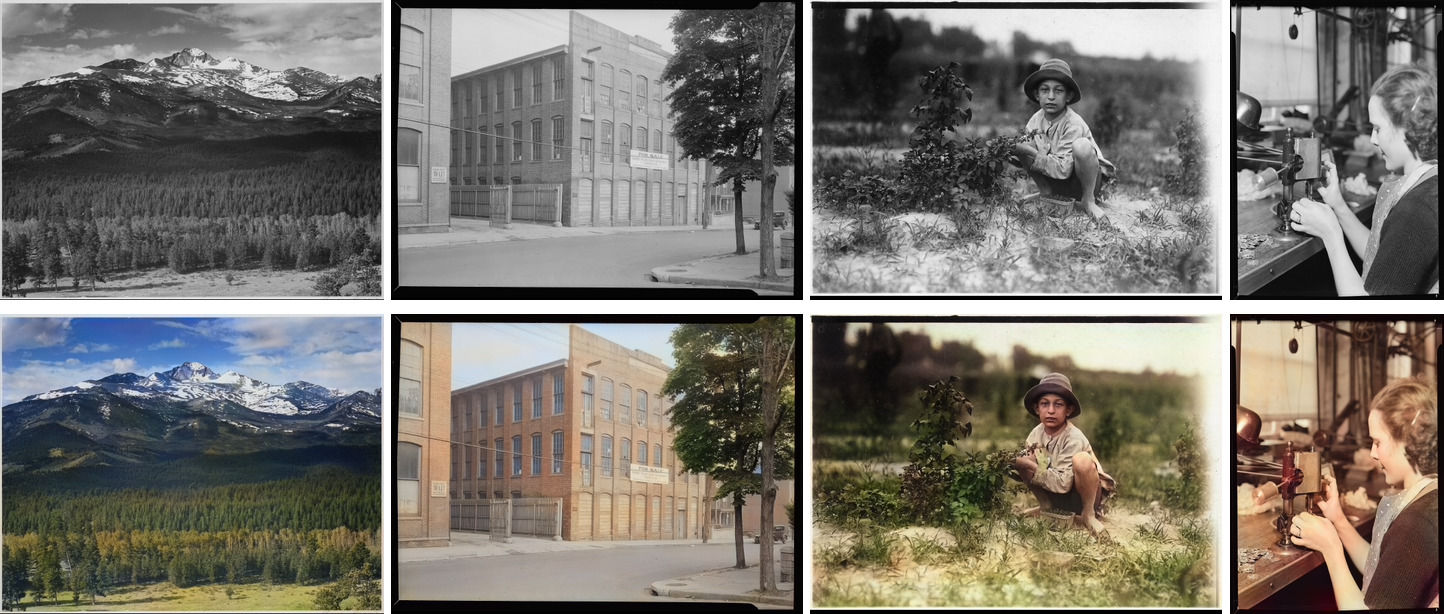 「ファイルを選択」ボタンを押し、色を付けたい画像を選択、「色付け!」ボタンをクリックすれば、カラーになった画像が表示される。シモセラ・エドガー助教がTwitterで「百年前の写真でも使用可能です。
