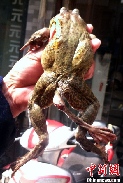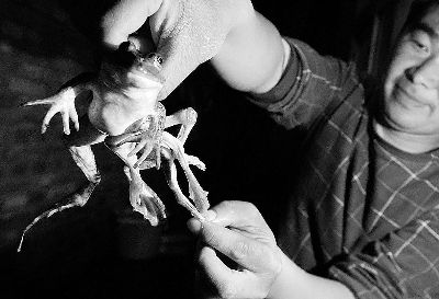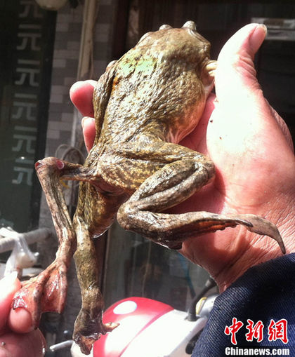 片目が欠損したカエル(佐藤栄記氏写真提供)