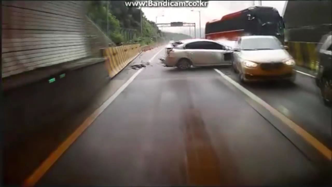 7月17日、韓国の嶺東高速道路にてバスが車に追突事故を起こす大惨事が起きた。トンネルの入口付近で乗用車5台に追突。