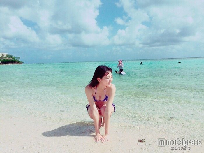沖縄で披露した透き通るように白く長い手脚と、天使のような笑顔で瞬く間に話題を呼び、ファンを獲得した。