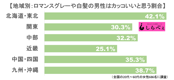 北海道・東北と、雪の多い地域では白髪男性の人気が高いと明らかに! 雪など白い物に見慣れているからなのか、白髪男性は好印象のよう。